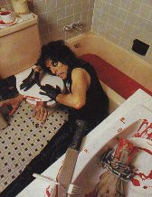 Name: Moster Dog Year of release: 1985 Role of Alice and amount of involvement: Alice is the STAR, if you can call it that! A VERY low budget B-type horror movie which sees Alice playing, would you believe, a ROCK STAR! Sheesh - talk about type casting! Alice can be seen throughout the entire of the film (where the lighting budget stretched to the additional candles that is)! I don't feel that this video was actually meant to get a major release and certainly in the beginning Alice was trying to deny that it even existed!!! I remember an interview with Alice when we asked him about films? "One day I'd like to." Said Alice. "What about Monster Dog ???" We asked. "Ah!" Said Alice. Tracks Played: New tracks recorded especially for the film were 'See me in the Mirror' and 'Identity Crisis'. |
