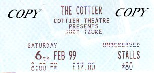 Now it was my turn. It would be the first visit to the Cottier Theatre but, more importantly, this was the first time I'd see Judie Tzuke in Glasgow! Previous concerts had included Birmingham, Edinburgh and London but never Glasgow.